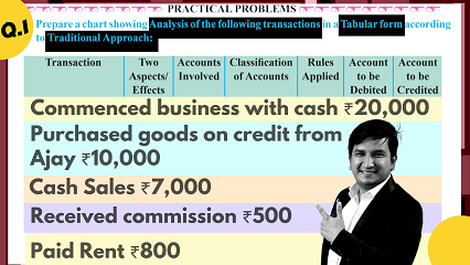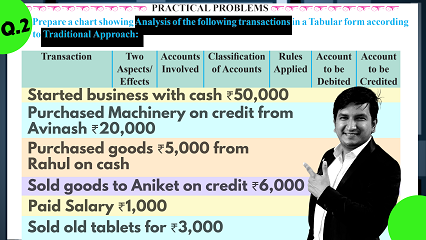 Analysis of transactions by applying rules of debit & credit | tabular form | Q.2 (Q.3 SP) | class 1