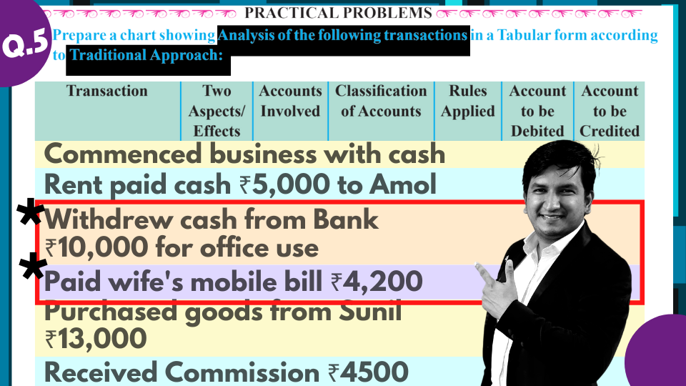 Analysis of transactions by applying rules of debit & credit | tabular form |Q.5| class 11 accounts